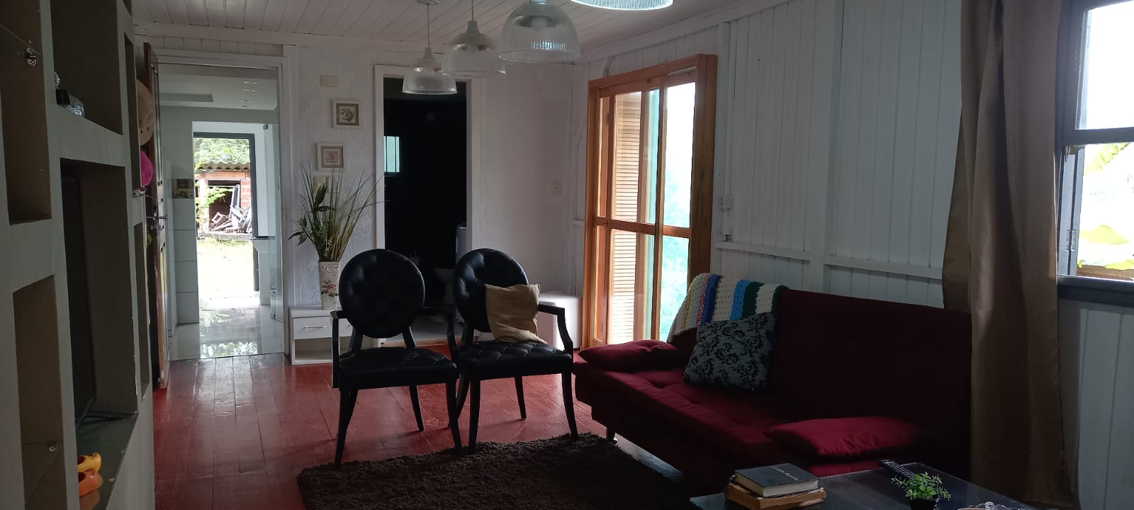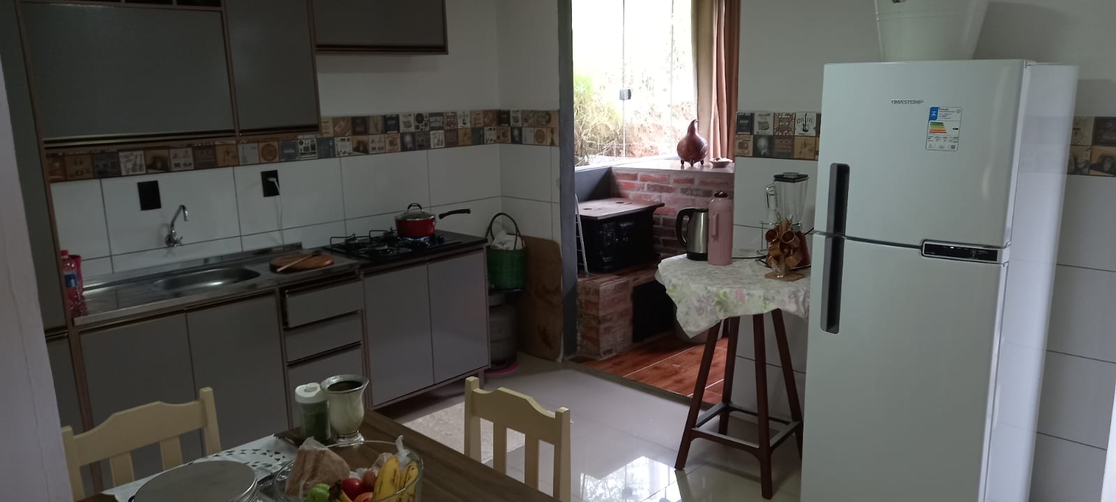 VENDE-SE Bela casa com 02 quartos, sala, cozinha, banheiro, lavanderia, área na frente com churrasqueira, fogão a lenha, toda mobiliada. Terreno 12x45. Pátio fechado. Localizada no Rolantinho R$220.000,00